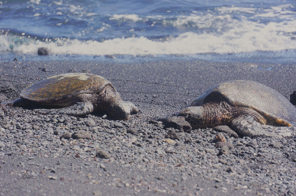 빅아일랜드 남동부에 위치한 푸날루우 블랙 샌드 비치는 화산 활동으로 인해 형성된 독특한 검은 모래 해변으로, 하와이에서만 볼 수 있는 특별한 자연경관을 제공합니다. 이 해변의 검은 모래는 용암이 바다와 만나 급격히 식으면서 부서진 현무암 조각들로 이루어져 있습니다. 푸날루우는 멸종 위기에 처한 하와이안 그린 씨 터틀(Hawaiian Green Sea Turtle, 또는 현지어로 '호누')이 햇볕을 쬐기 위해 자주 찾는 곳으로도 유명합니다.